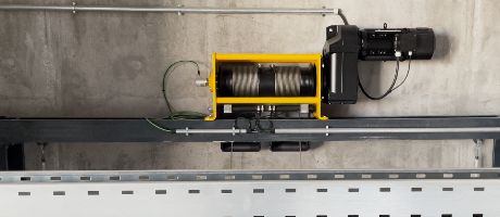 Designed by HUCHEZ Engineering, our department dedicated to special winches and cable-based machinery, these winches are used at a waste treatment facility to operate vertically sliding doors, each weighing 2.5 tons.