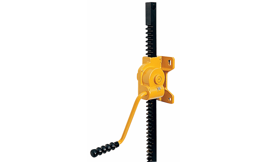 Light. Compact. Painted model. Automatic load holding by worm screw. Fixed crank with ergonomic rotating handle. Stroke: 800 mm. 1 or 2 m long rack in