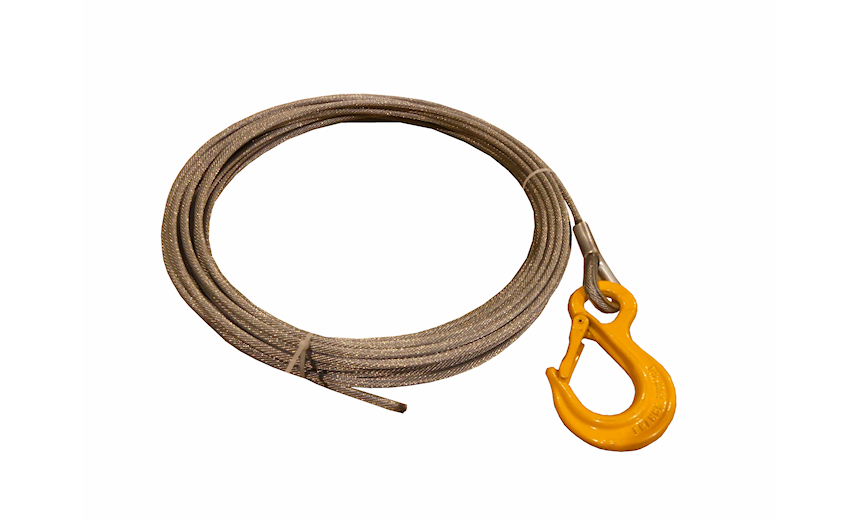 Metallic central core 1960 N/mm² - Right hand lay. Wire rope kit with sleeved thimble loop and single eye hook.