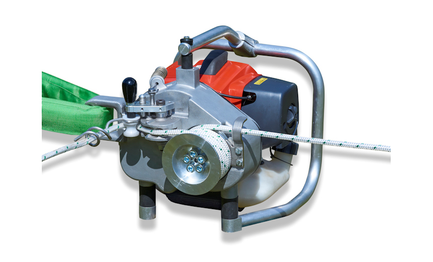 Gamme de treuils-cabestans portatifs à moteur essence de 400 à 1800 kg. Opérations de traction/halage uniquement.