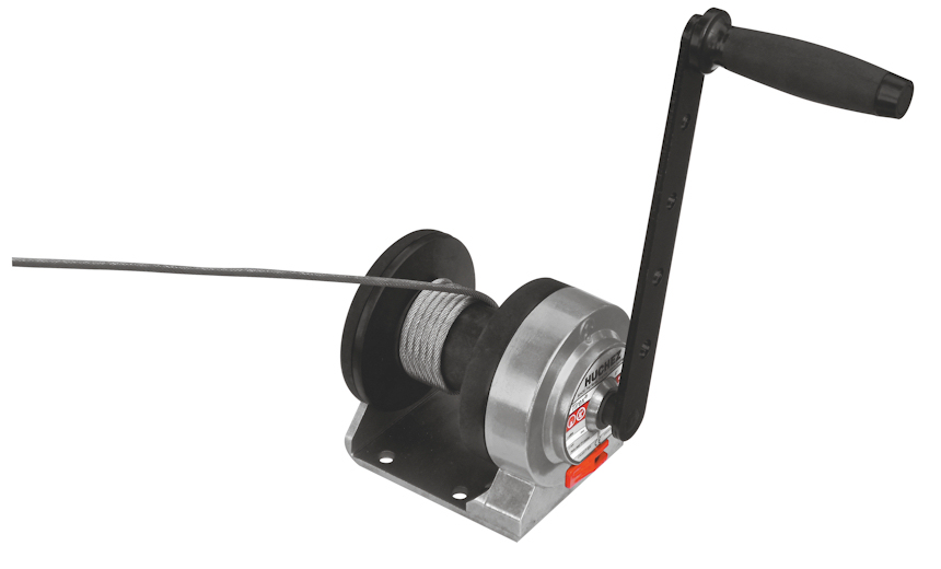 Gamme de treuils manuels à engrenages disponibles en version 150 et 300 kg, modèles standard (avec platine en acier zingué) ou inox (avec platine en inox).